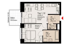 - Wohnfläche: 43.68 m²